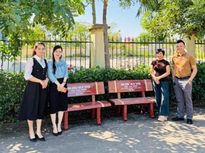 (Tiểu học Nam Hưng) Phòng khám Nha Khoa 108 Dr Tuyền trao tặng 20 ghế đá sân trường