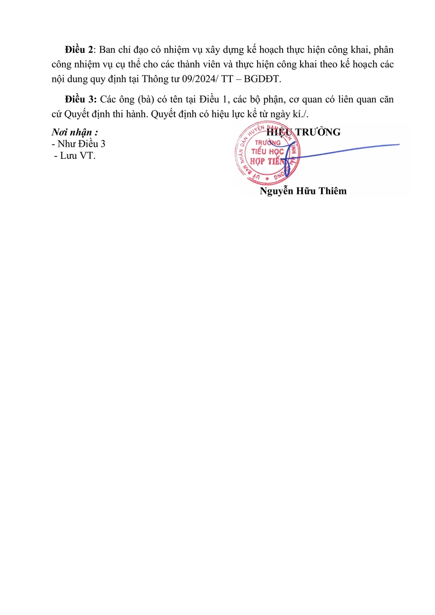 (Tiểu học Hợp Tiến) Quyết định thành lập BCĐ Công khai năm học 2024-20 ...